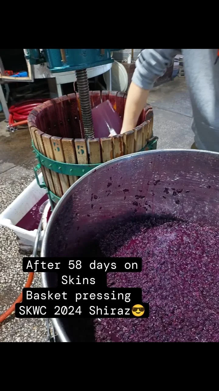 All the grapes flavours and colours are jam packed in the skins, so it is essential to extract these into the wine by daily plunging or pumping the juice from the bottom of the tank back over the skins at the top.